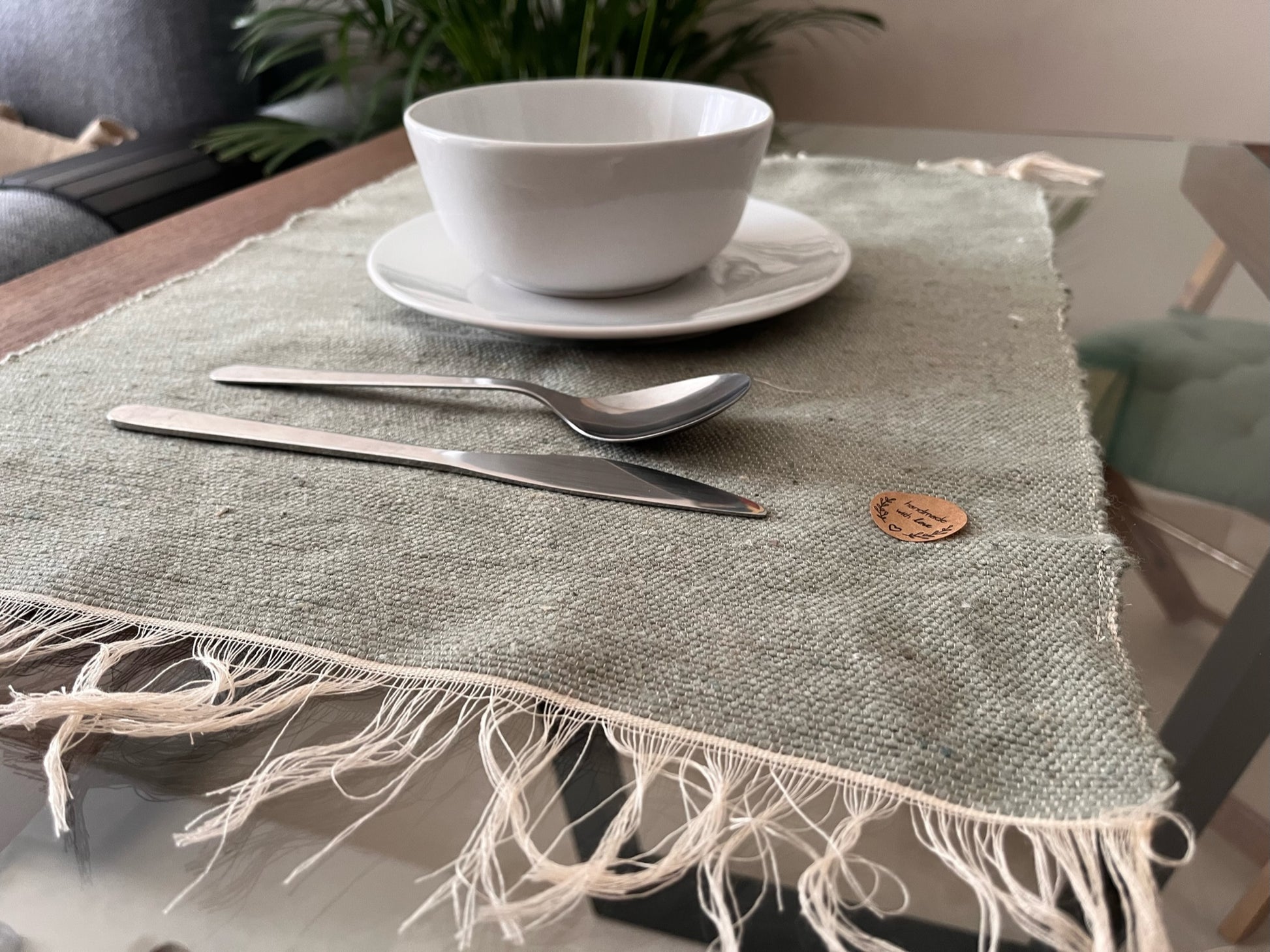 Plain Placemats with Fringes (Pack of 2) - Olive Edition