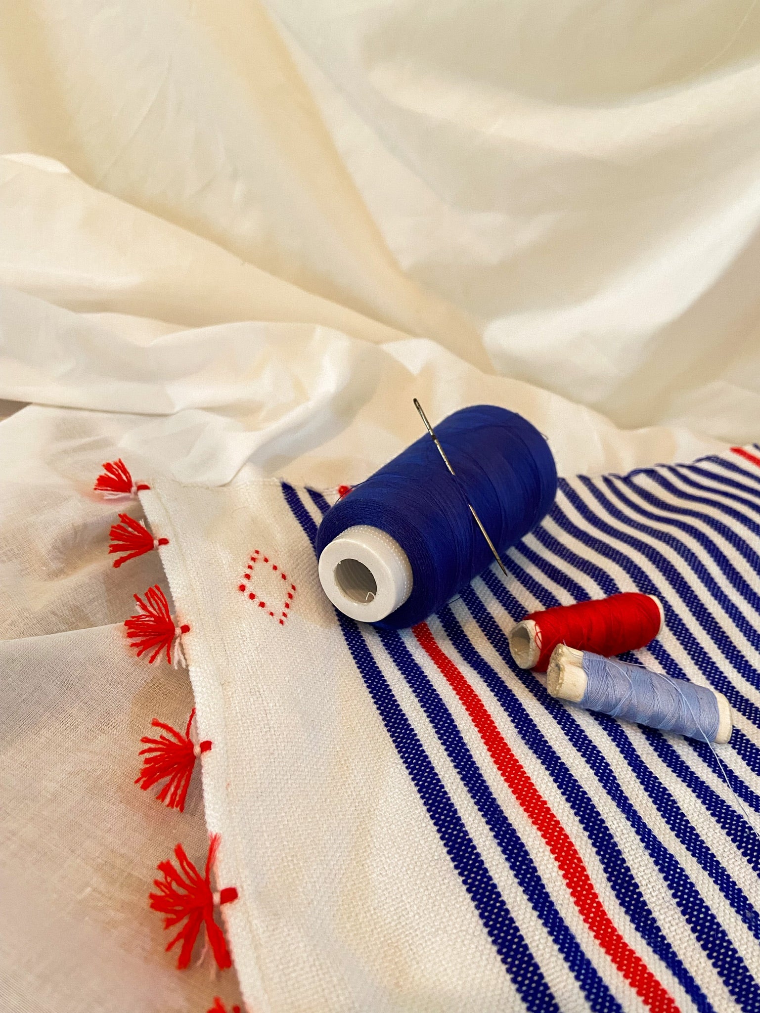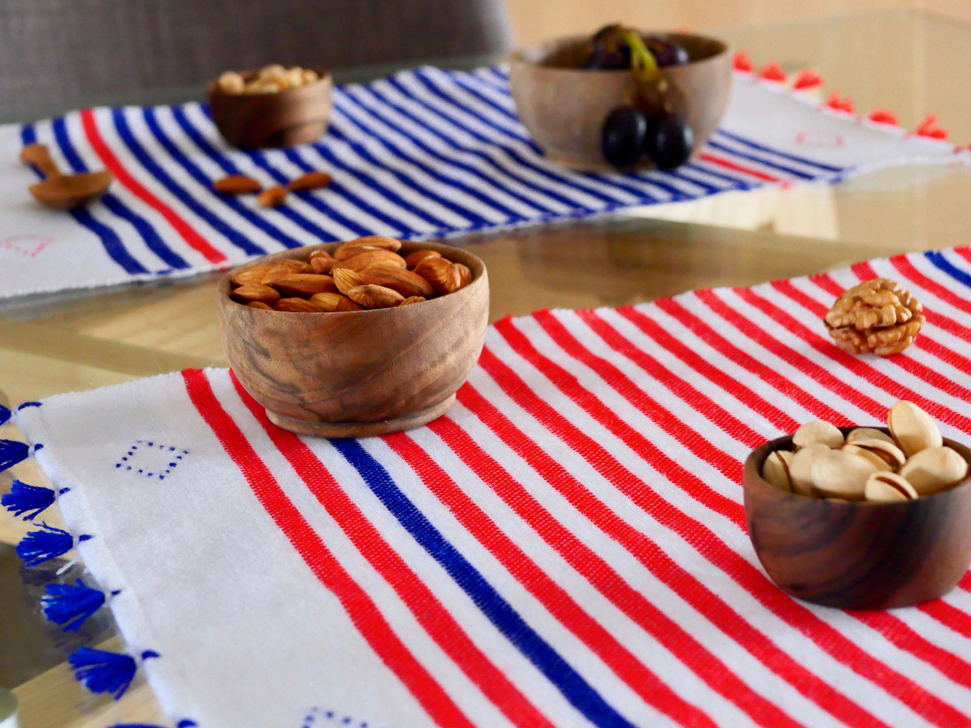 Inspired by the vibrant hues of Chefchaouane, these placemats bring the serene blues, crisp whites, and bold reds of this enchanting Moroccan city into your home.
