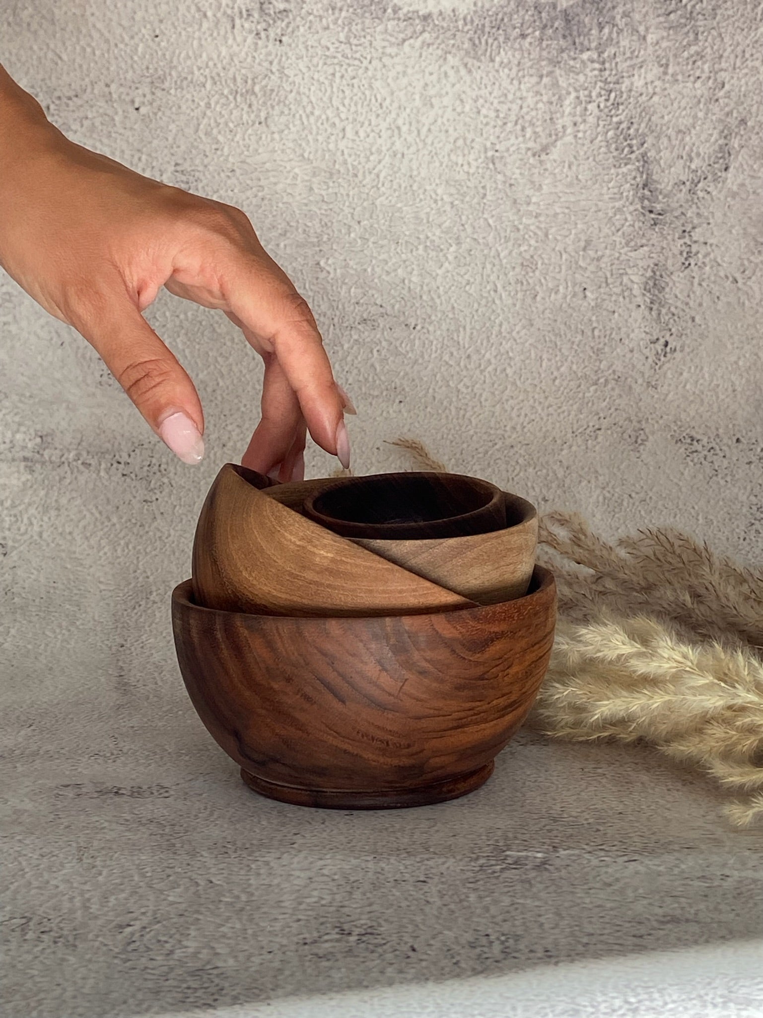 Découvrez notre magnifique set de bols accompagnés de cuillères en noyer faits main à Marrakech.