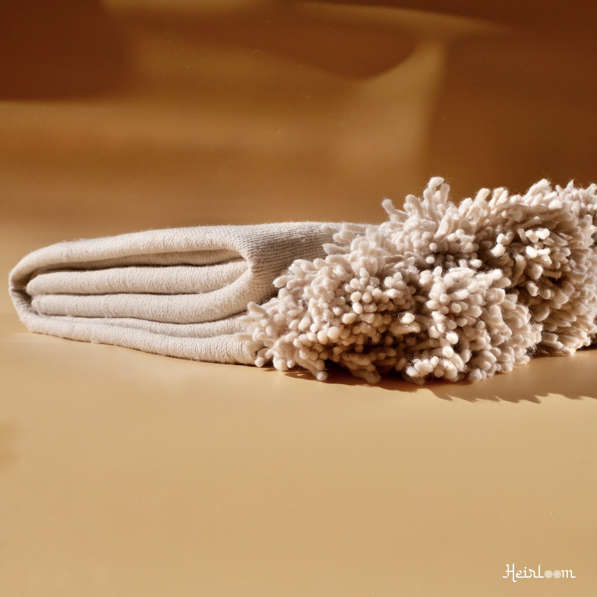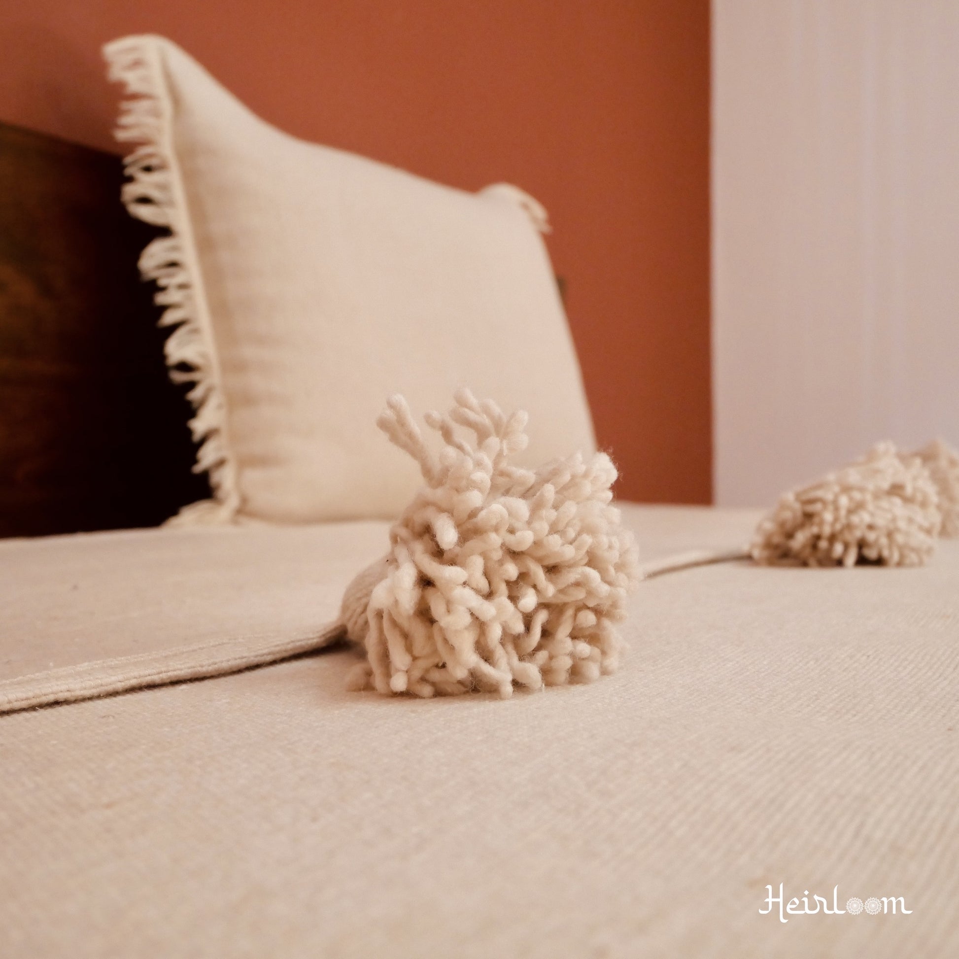 Elle présente un design simple agrémenté de pompons attrayants, captant le regard de quiconque entre dans la pièce.
